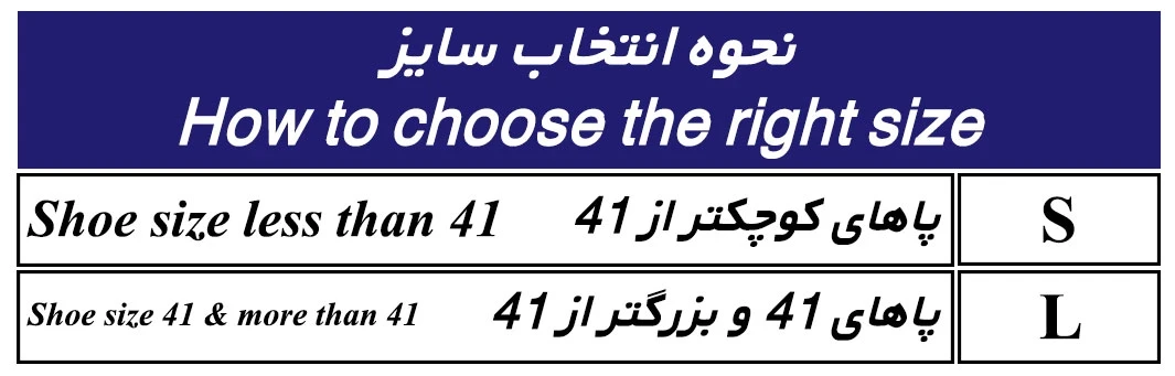 - سایز بندی: راهنمای انتخاب سایز در تصاویر گالری و پایین صفحه