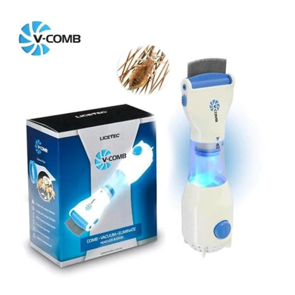 شانه شپش برقی 4 فیلتر v-comb تنها راه درمان قطعی و اسان بیماری شپش و رشک با دستگاه و محلول است. دستگاه مکنده شپش و تخم شپش (رشک) بهترین روش درمان بیماری واگیردار شپش و تخم ان می باشد. شانه v-comb از دندانه های تماما استیل و ضد زنگ و نزدیک به هم و عاج دار تشکیل شده است و با قدرت مکش خوبی که دستگاه دارد شپش و مهم تر از آ« تخم شپش را مثل جاروبرقی از موها جدا و به فیلتر دستگاه میفرستد.