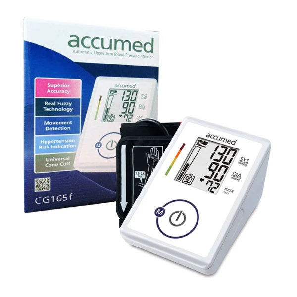 فشارسنج بازویی اکیومد دیجیتال 165محصول برند اکیومد (Accumed) و یکی از بهترین دستگاه های فشارسنج موجود در بازار با قیمتی مناسب و ساخت کشور چین و تحت لیسانس سوئیس می باشد. فشارسنج بازویی اکیومد دیجیتال 165 دارای LCD به اندازه 44×54 میلی متر است و دارای 90 جایگاه حافظه جهت ذخیره سازی نتایج است. این محصول دارای تکنولوژی REAL FUZZY که قابلیت تنظیم فشار و باد بازو بند را دارد و باعث می شود که کمترین فشار به دست شما وارد شود.فشارسنج بازویی اکیومد دیجیتال 165 با استفاده از مواد با کیفیت و دوام بالا برای مصارف خانگی و درمانی طراحی و عرضه شده است. این دستگاه دارای تاییدیه انجمن فشار خون (EHS) و همچنین دارای استاندارد CE0336 و ISO و BHS انگلستان با گرید A/A است.