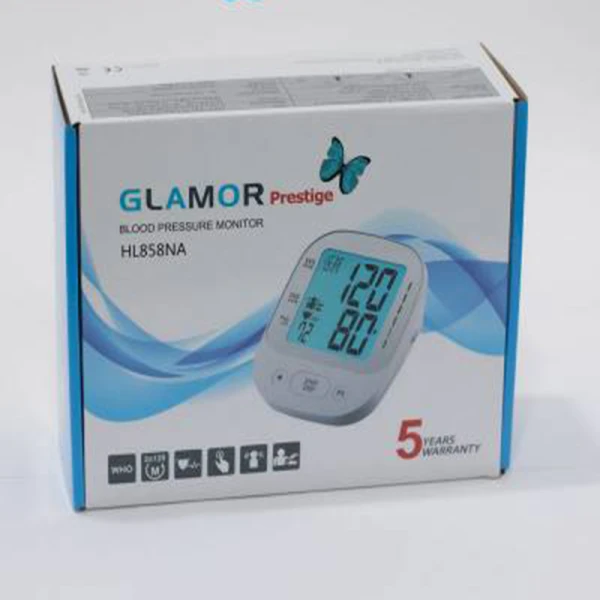 فشار سنج دیجیتال بازوئی گلامور این دستگاه 2 جایگاه هر کدام 120 عددی حافظه دارد که فشار خون مربوط به کاربر با تاریخ و ساعت را در خود ذخیره میکند. قابلیت خاموشی خودکار از دیگر ویژگیهای مثبت این دستگاه است که پس از استفاده بهصورت خود به خود خاموش میکند. HL858 دارای قابلیتها و ویژگیهایی از قبیل صفحه نمایش بزرگ، حافظهی ذخیرهی نتایج، نمایش ضربان قلب نامنظم، قابلیت خاموشی خودکار، نوع بازویی، منبع تغذیهی برق و باتری است. این دستگاه مناسب استفاده در منزل، مطب پزشکان و کلینیک می باشد. اقلام همراه فشارسنج بازویی گلامور مدل 858 ساده