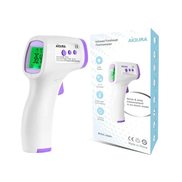 مشخصات تب سنج دیجیتال آیکورا Aiqura مدل AD801 ا Non-Contact Telephoto Thermometer Aiqura تب سنج دیجیتال آیکورا Aiqura یک دماسنج غیر تماسی است که با استفاده از امواج مادون قرمز، دمای بدن انسان را اندازه گیری می کند. هنگام استفاده فقط لازم است که دستگاه را روبروی پیشانی قرار دهید تا دمای بدن به سرعت و با دقت اندازه گیری شود و علاوه بر نمایش سریع دما در صورت بالا بودن دمای بدن رنگ پس زمینه نیز قرمز خواهد شد و دستگاه هشدار صوتی خواهد داد.