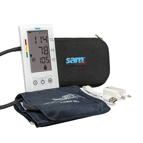 این فشار سنج با 240 حافظه داخلی و امکان ثبت اطلاعات یک کاربر برای مدت 30 روز را دارا می باشد. همچنین در این دستگاه قابلیت نمایش آرتمی (ضربان قلب نا منظم) نیز تعبیه شده است. حسگر و یا سنسور های اندازه گیری ضربان قلب موجود در فشار سنج بازویی سام کر SamCare با دقت 1 میلی متر جیوه میباشد. همچنین امکان تغییر واحد های اندازه گیری و همچنین امکان کار کردن این دستگاه هم از طریق برق مستقیم وهم از طریق باتری فراهم آمده است.