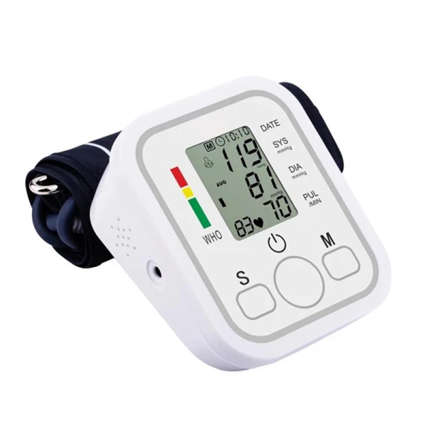 سمت چپ صفحه نمایش، نمودار رنگی فشار خون می باشد که وضعیت فشار خون را از نرمال تا خطرناک طبقه بندی می کند. سمت راست صفحه نمایش ال سی دی 3 کلمه SYS که به معنای فشار خون بالا، DIA به معنای فشار خون پایین و PUL تعداد ضربان قلب در دقیقه می باشد. در کنار دستگاه اسپیکر سخنگو محصول قابل مشاهده و در کنار آن محل اتصال کاف موجود است. این دستگاه یک ابزار دقیق و قابل اعتماد برای اندازه گیری فشار خون در خانه است. استفاده از آن آسان است و می تواند به افراد کمک کند تا فشار خون خود را به طور موثر کنترل کنند.