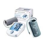 درباره فشارسنج بازویی دیجتال بیورر مدل BM44: فشارخون سنج بازویی بیورر Beurer مدلBM44 محصولی کاربردی برای اندازه گیری فشارخون و اطلاعاتی همچون ضربان قلب و تحلیل داده های مربوط به آن است.این دستگاه مجهز به سیستم اتوماتیک ورود هوا به دستگاه بوده و در محدوده اندازه گیری فشارخون 0 تا 300 میلی متر جیوه و محدوده اندازه گیری ضربان قلب دستگاه 40 تا 180 پالس بر دقیقه کارآیی دارد همچنین این قابلیت را دارد که بی نظمی در ضربان قلب (آریتمی) را تشخیص داده و اعلام کند. دستگاه با چهار عدد باتری 1.5 ولت قلمی تغذیه می شود و در صورت اتمام شارژ باتری ها نشانگر تعویض باتری بر روی صفحه نمایش ظاهر می گردد. پنل دستگاه دارای یک کلید فشاری وصفحه LCD بزرگ می باشد، بر روی این صفحه نمایش می توان اطلاعات مربوط به فشار سیستولیک، فشار دیاستولیک، ضربان قلب، علامت آریتمی قلب ، نشان گر تعویض باتری و حافظه را مشاهده نمود. دستگاه فشارسنج BM44 BEURER دارای 4 حافظه کاربر می باشد که هر کدام دارای 30 جایگاه حافظه می باشد. جهت اندازه گیری فشار خون باید بازوبند را بر روی بازوی برهنه سمت چپ 2 تا 3 سانتی متر بالاتر از گودی آرنج ببندید، لوله بازوبند باید در راستای کف دست باشد. این بازوبند مناسب دور بازوی 22 تا 30 سانتی متری می باشد. با فشار دکمه روشن و خاموش پس از انتخاب کاربر ، دستگاه شروع به پمپ هوا نموده و بصورت خودکار فشار هوای مناسب را تنظیم می کند. با تکمیل اندازه گیری فشار، فشار هوای داخل بازوبند خالی شده و اطلاعات مربوطه شامل نبض، فشار خون سیستولیک و دیاستولیک و محدوده طبقه بنذی شده WHO بر روی صفحه ال سی دی نمایش داده می شوند.
