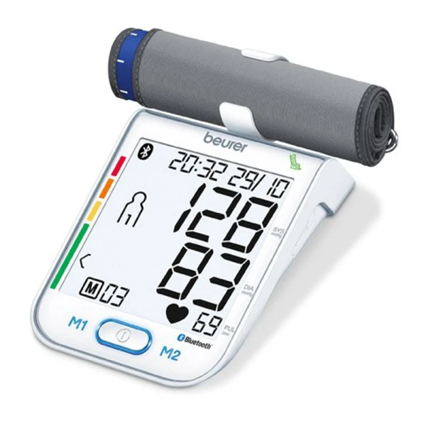 فشارسنج بازویی BM77 بیورر جهت اندازهگیری کاملا اتوماتیک فشارخون و ضربان قلب از روی بازوی شخص میباشد. از ویژگیهای این محصول وجود بلوتوث، نرم افزار مخصوص ، دکمه لمسی، حافظه برای دونفر تا 60 حافظه، نگهدارنده کاف، سیستم خاموشی خودکار و تشخیص آریتمی میباشد. این محصول متوسط فشارخون اندازهگیری شده را به شما نشان میدهد و مناسب استفاده دور بازوی 24 تا 40 سانتیمتر میباشد. از وسیله همراه این محصول باتری و کیف میباشد. این محصول دارای جایزه طراحی Reddot 2014، شاخص سازمان بهداشت جهانی (WHO)، قابلیت نصب رایگان نرم افزار HealthManager برای برنامه ریزی و نظارت بر آموزش و مدیریت بهداشت و درمان، جایزه Plus X 2014 و برنده جایزه Technik Zu Hause است.